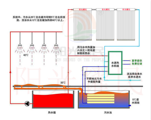 《洗浴排水熱能回收系統》是一項采用太陽能+熱泵,回收洗浴后的廢水中熱能的技術。_高溫洗浴熱泵回收低溫余熱,利用這一新的技術代替傳統加熱方法,能夠減少燃煤對大氣的污染,節約大量不可_能源。